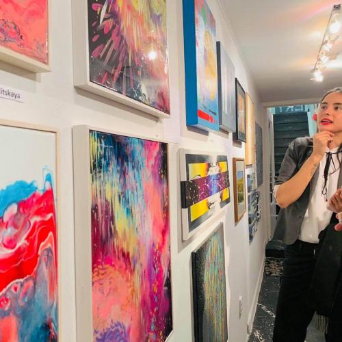 I am a self-taught abstract artist. Abstract art is something that Iโve always been drawn towards since I was a lilโ kid. As I grew older, my focus shifted towards humanitarianism. As an active mental health and homelessness advocate, I realized I cannot continue to help others if I donโt help myself. Having struggled with chronic anxiety my whole life, I knew I needed an outlet for self expression. Learning to reconnect with my inner self and allowing myself to explore my childhood love of abstract art has served to be one of the most impactful experiences of my life.